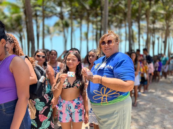 Abertura das atividades do Setembro Colorido com crianças e adolescentes atendidos pelo DIA/NAME durante passeio no Beach Park