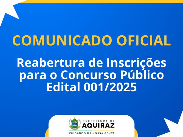 08-01-2026O Instituto Consulpam, em conjunto com a Prefeitura Municipal de Aquiraz, comunica a reabertura excepcional das insc [...]