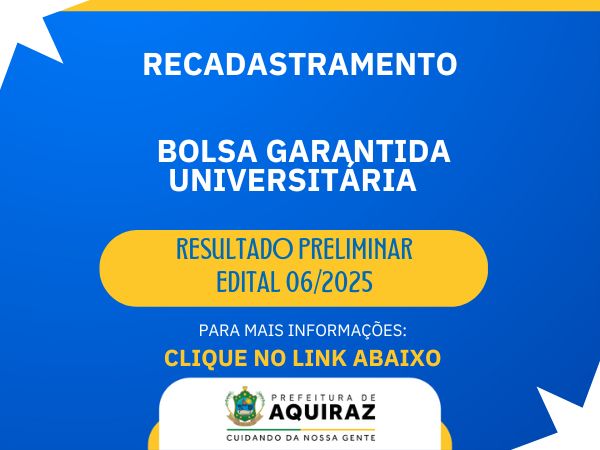 A Prefeitura de Aquiraz, por meio da Secretaria Municipal de Educação (SME), divulga, nesta segunda-feira (19), a Chamada Pública Nº 03/2024 que diz respeito ao processo de escolha para o cargo de diretor pedagógico de escola.
